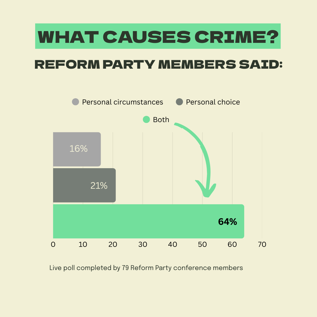 64% said crime is caused by both personal choices and wider social circumstances