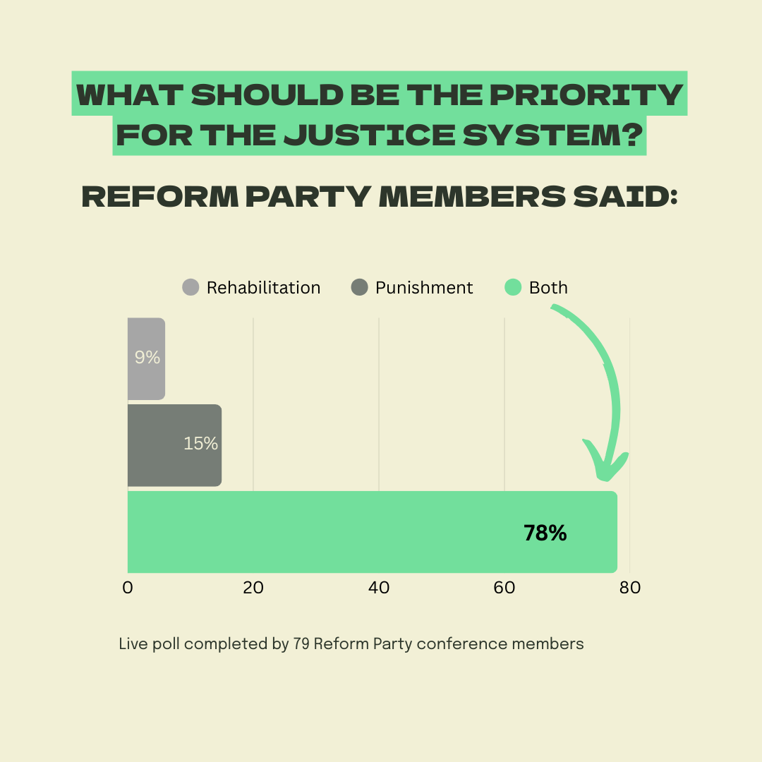 “You’re sending these people to prison to learn new criminal skills… we need tougher wings in prisons, but we also need to look at rehabilitation and what’s going wrong there.” – Reform Party Member.